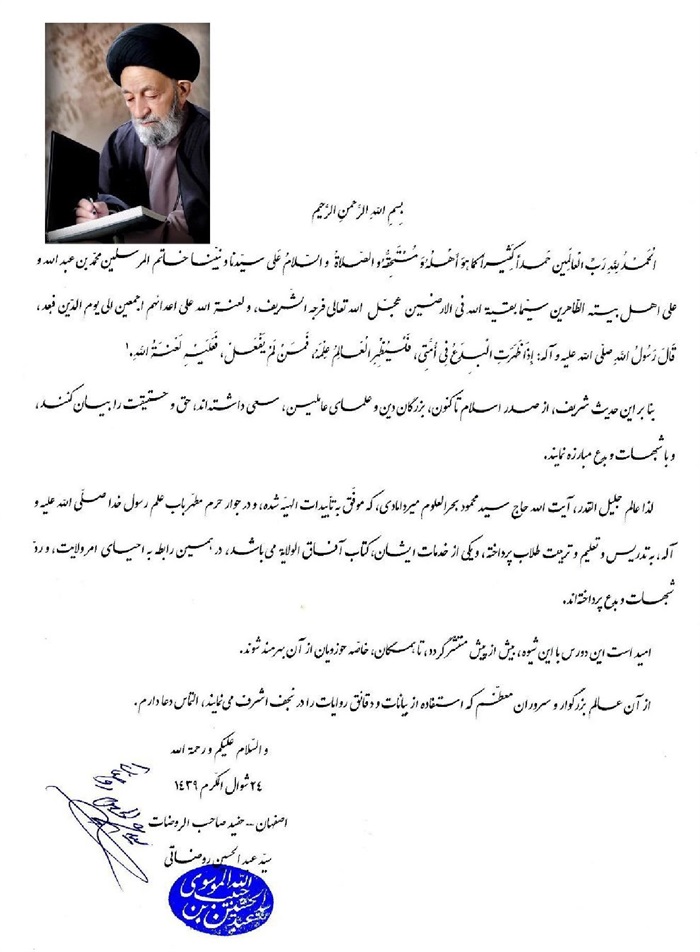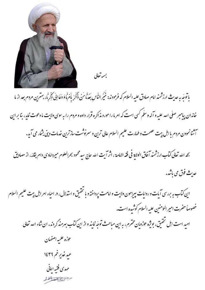 مرجع عالیقدر حضرت آیت اللّه حاج شیخ لطف الله صافی گلپایگانی (دام ظلّه العالی) در مورد کتاب حاضر فرمودند: