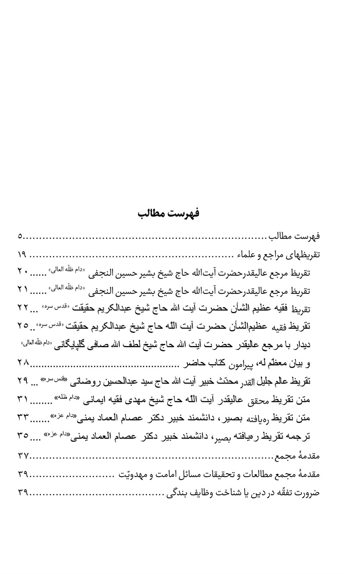 مندرجات:ج.1.مزین به تقریظ مراجع و علمای عظیم الشان.